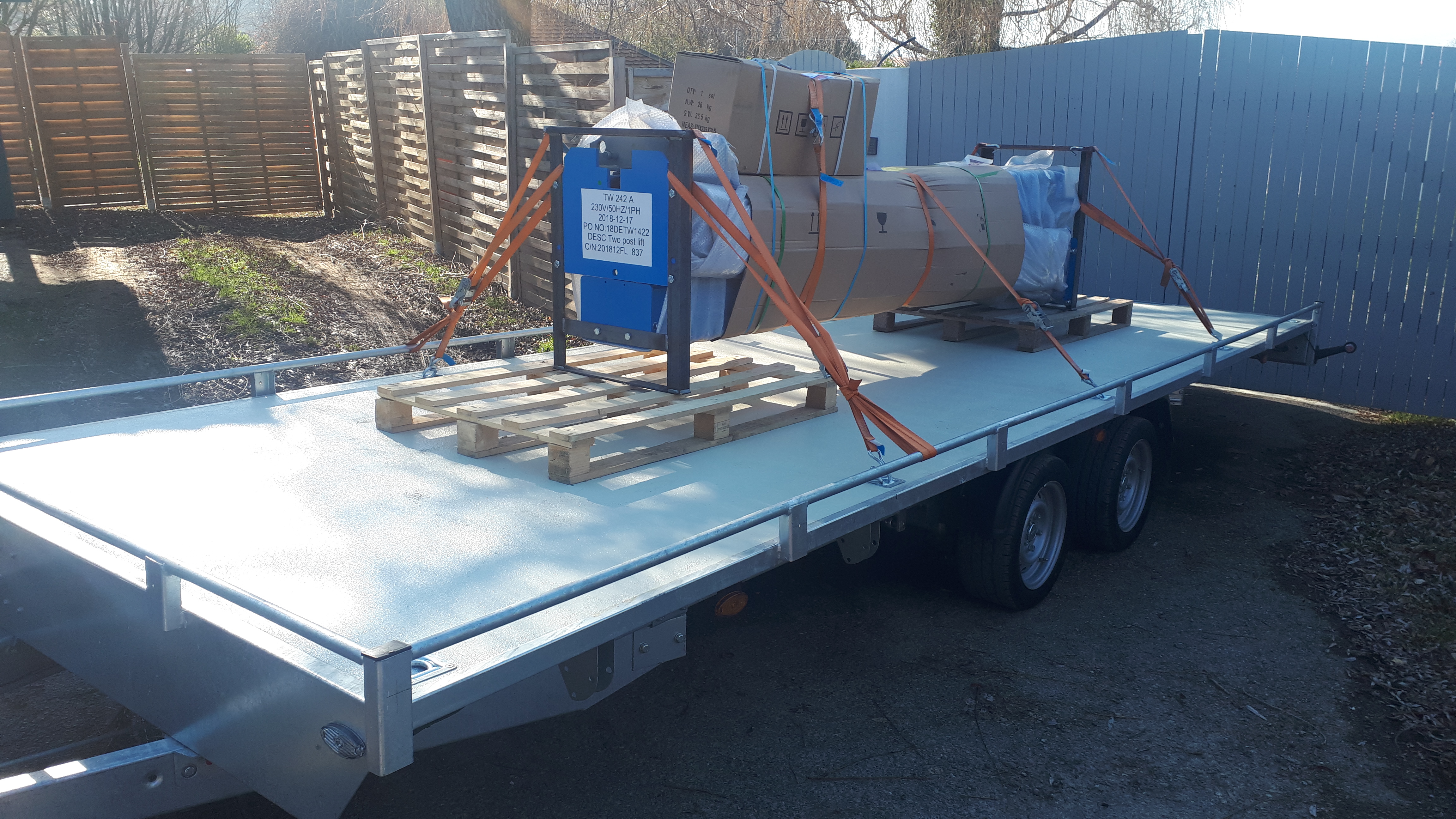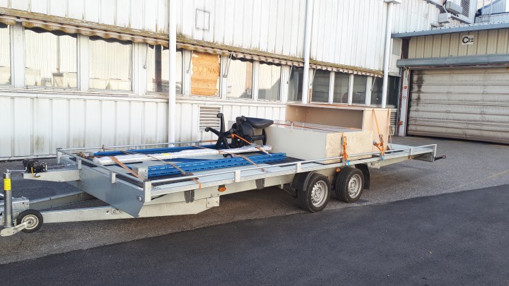 Transport d’une bétonnière industriel (poids env. 1000 kg) de Cannes en Isère.