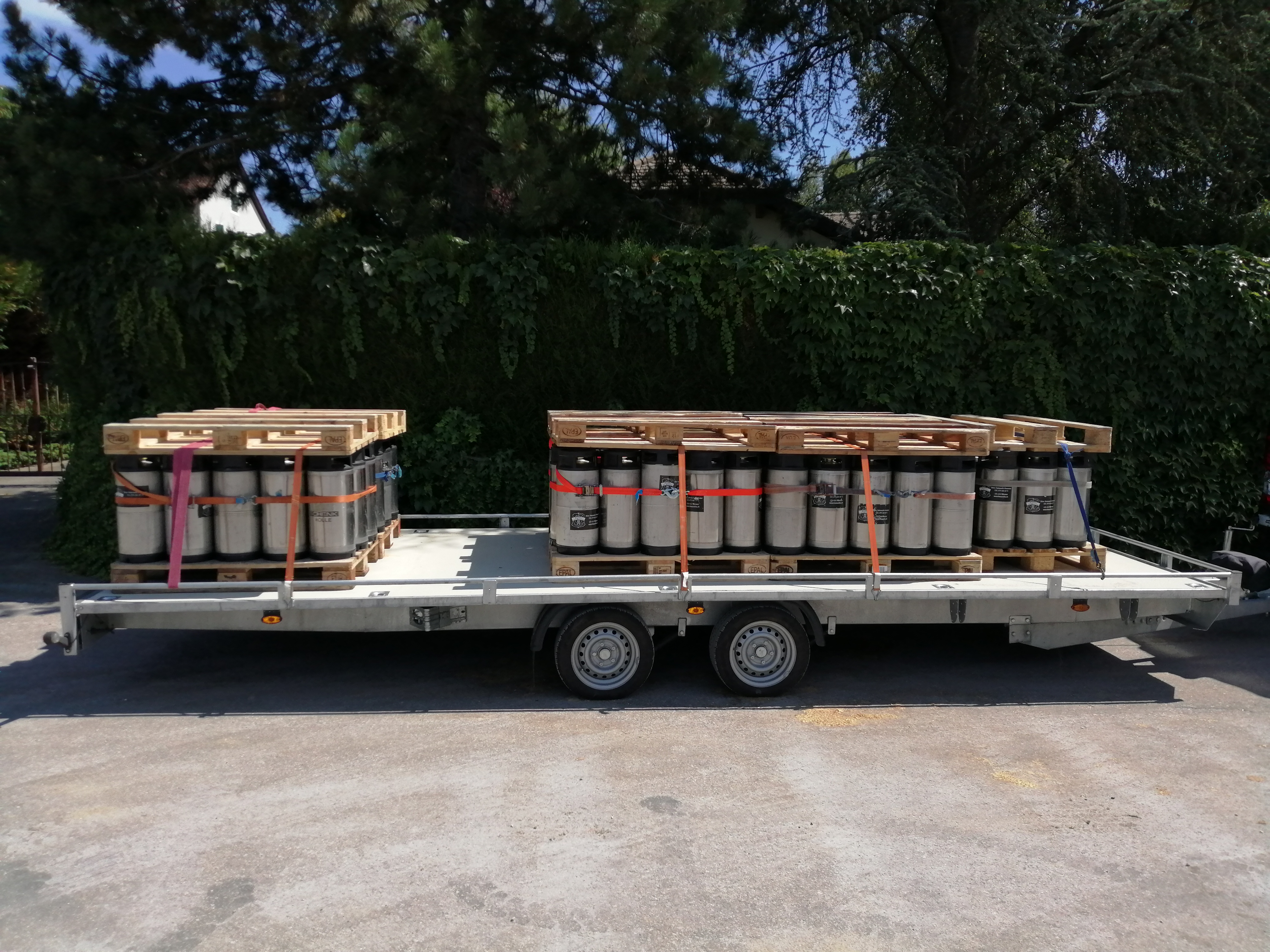 Transport fûts + remorque pour la Brasserie des Murailles (https://www.bmurailles.ch/) à la Vogue de Ruclon.