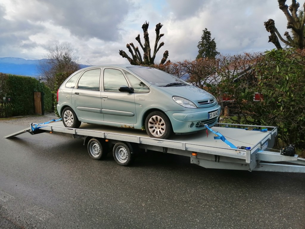 Transport d’une Citroën Picasso à la casse chez Duby Autos (http://www.dubyauto.com/).